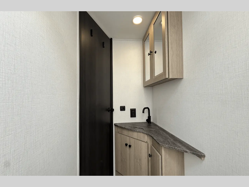 Some of the top features include a fiberglass laminated roof, a Winegard Air 360+ digital antenna to stay connected as you camp, plus a 10.7 cu. ft. 12V refrigerator for plenty of food storage. There is also an outside shower, a power awning with LED lights, and an optional 12V solar charging system for off-grid capabilities! Interior comforts include black out roller shades, an oxygen-infused shower head, soft touch self-closing drawer guides, and so much more!
