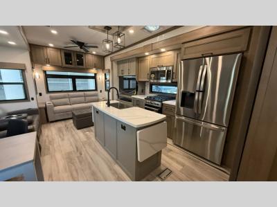 Each fifth wheel is built with 101" wide-body construction, an extra-reinforced heavy-duty front fiberglass cap, and features the All-Weather Insulation Package so you can enjoy camping in all kinds of weather. The six-point hydraulic auto-leveling makes setting up easier, and the KZ Engage Powered by OneControl features an app that you can download to control all of your unit's functions right from your smartphone. The Durango Gold's kitchen is a chef's dream with its 26-cu. ft. house refrigerator with a 2,000W inverter, 30" convection microwave, 24" oven with four-burner range, plus abundant storage!